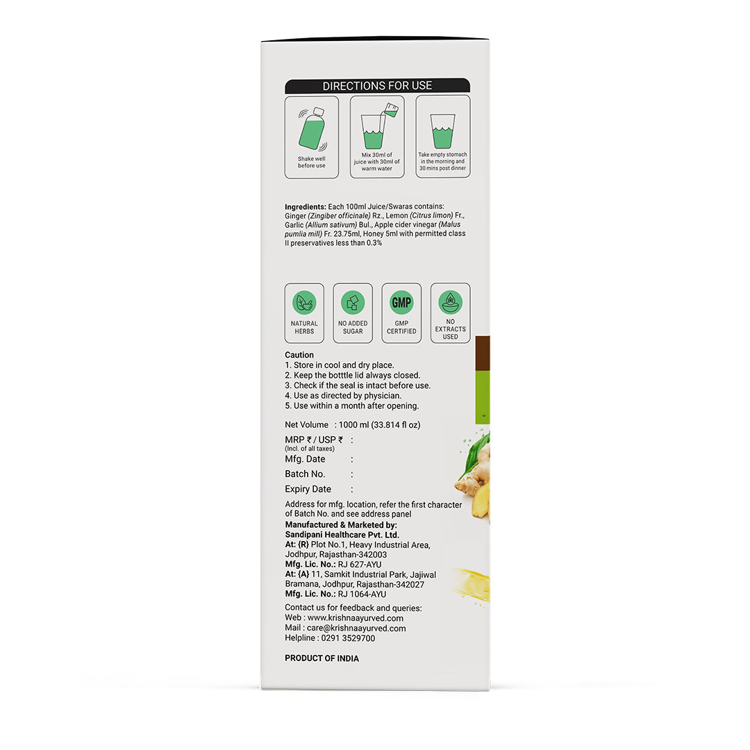 Perfect mix of Apple Cider Vinegar, Ginger juice, Garlic juice, Lemon juice & Honey
