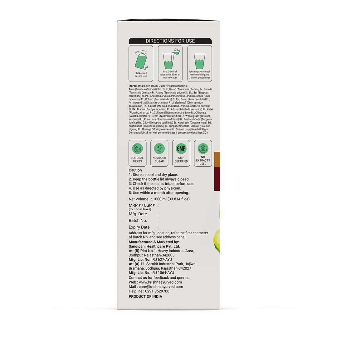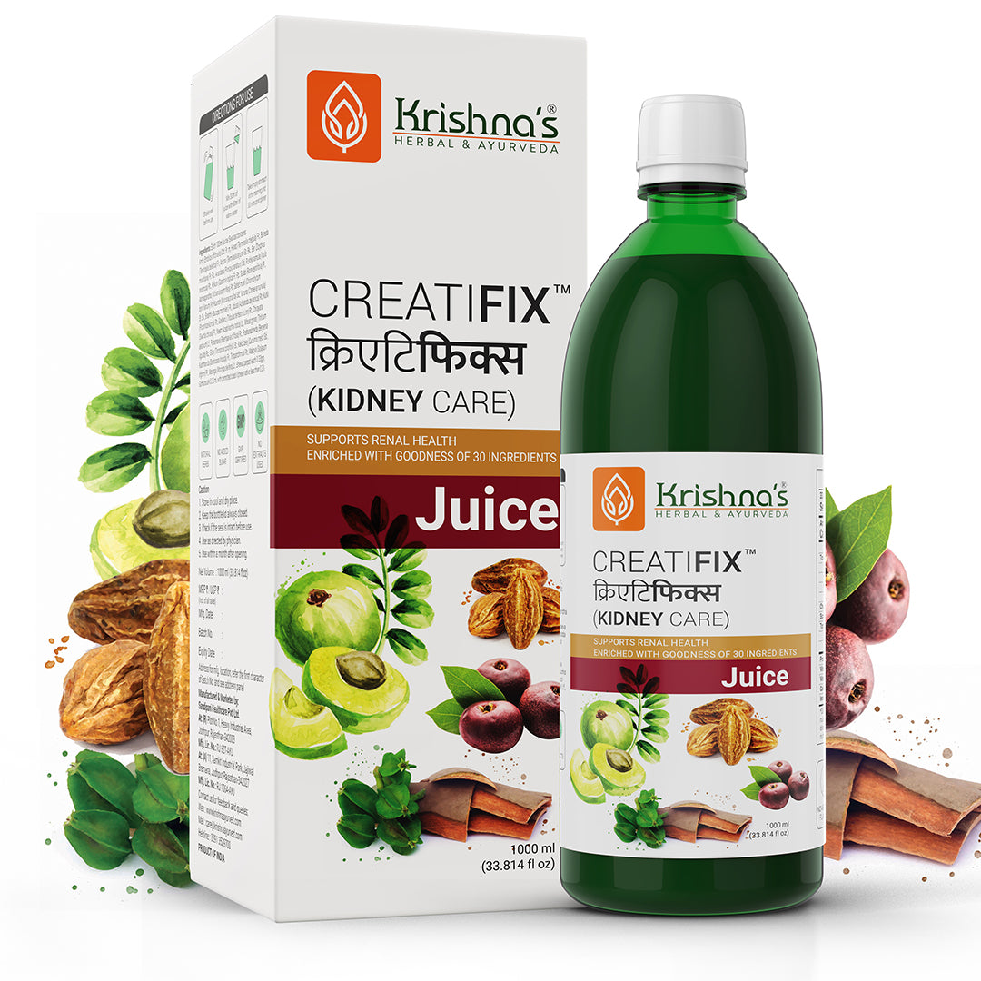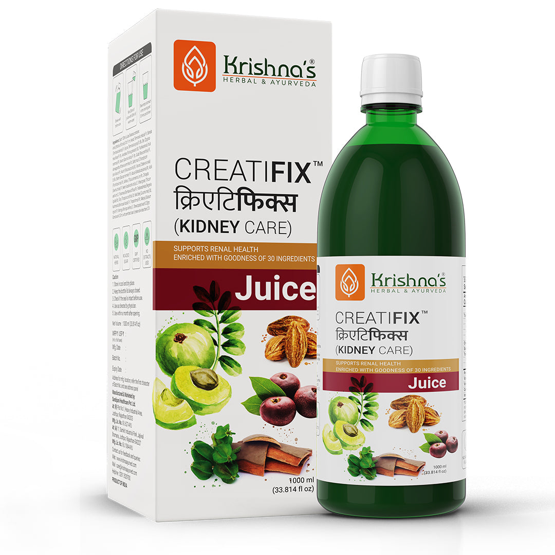 Krishna's CREATIFIX JUICE is a carefully prepared Ayurvedic juice made from powerful natural herbs traditionally used to support renal and kidney wellness. It is designed to help maintain internal balance and keep the urinary system functioning smoothly in everyday life.
