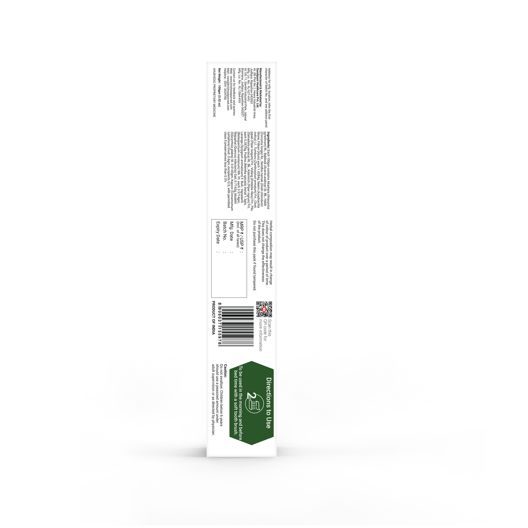 SLS Free Dantoshad Ayurvedic Toothpaste