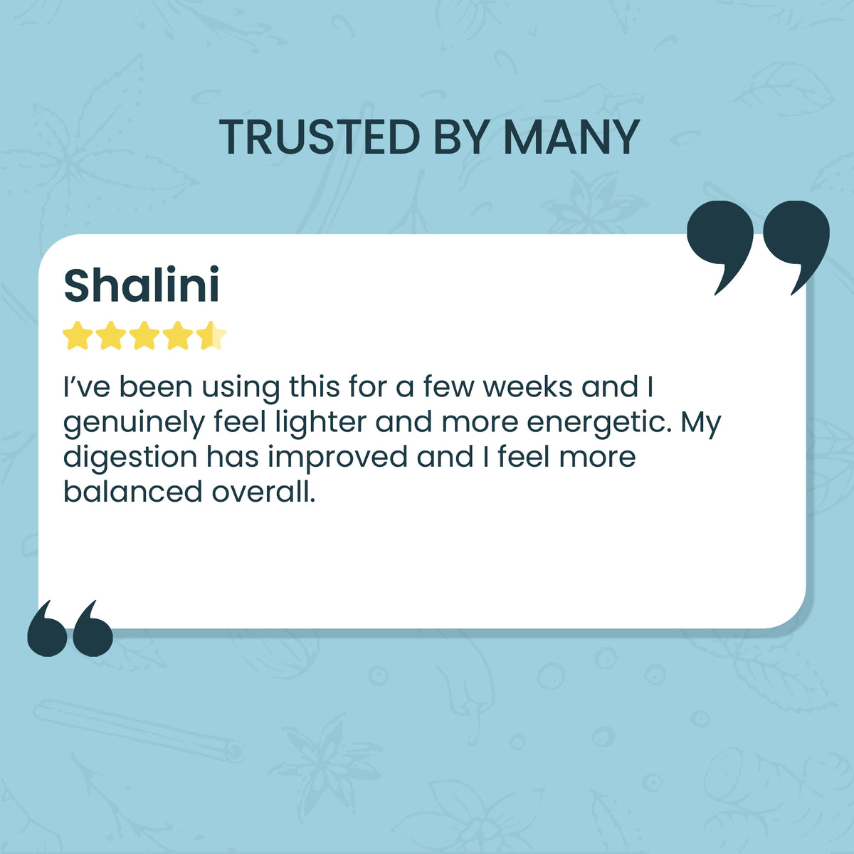 ✅ Improved Digestion : The ayurvedic herbs aid in constipation relief and digestion improvement. These ingredients may help soothe the digestive tract, reduce inflammation, and alleviate symptoms like bloating, gas, and indigestion.