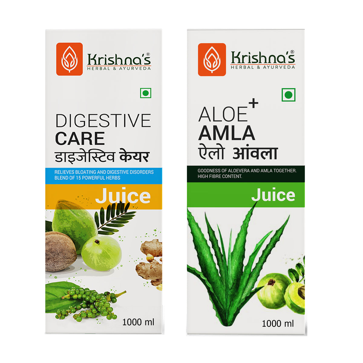 A Perfect Combo for healthy body, for healthy hair, skin, digestion & immunity. Digestive Care Juice is a premium-quality blend of natural ingredients formulated to support and nourish your digestive system. Aloe-Amla Mix Juice provides you with all the benefits of Indian gooseberry (amla) and aloe vera in one juice. This combination is specially designed for those who want to get all the benefits of both juices but has no time to mix it every morning. This amazing combination improves digestion process, manage stomach issues such as acidity and indigestion etc. by cleansing the body and flushing out the toxins.