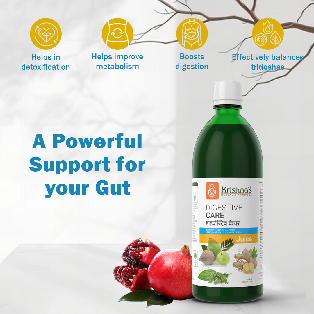 - Digestive Balance: Digestive Care Juice supports the bodyโs natural digestive rhythm, helping maintain smooth digestion and internal comfort.