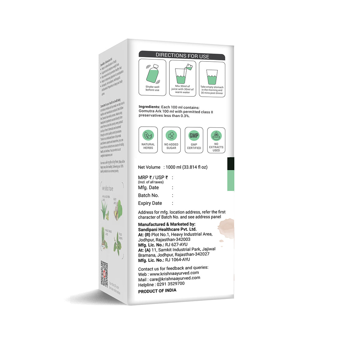 Krishna’s Ayurveda Gomutra Ark is a traditional Ayurvedic formulation made through the distillation of Tharparkar cow urine. It is widely recognized for its detoxifying action, support for digestion, and ability to balance the body’s three doshas (Vata, Pitta, Kapha). Regular use helps in boosting vitality, promoting healthy skin and hair, and maintaining overall wellness.