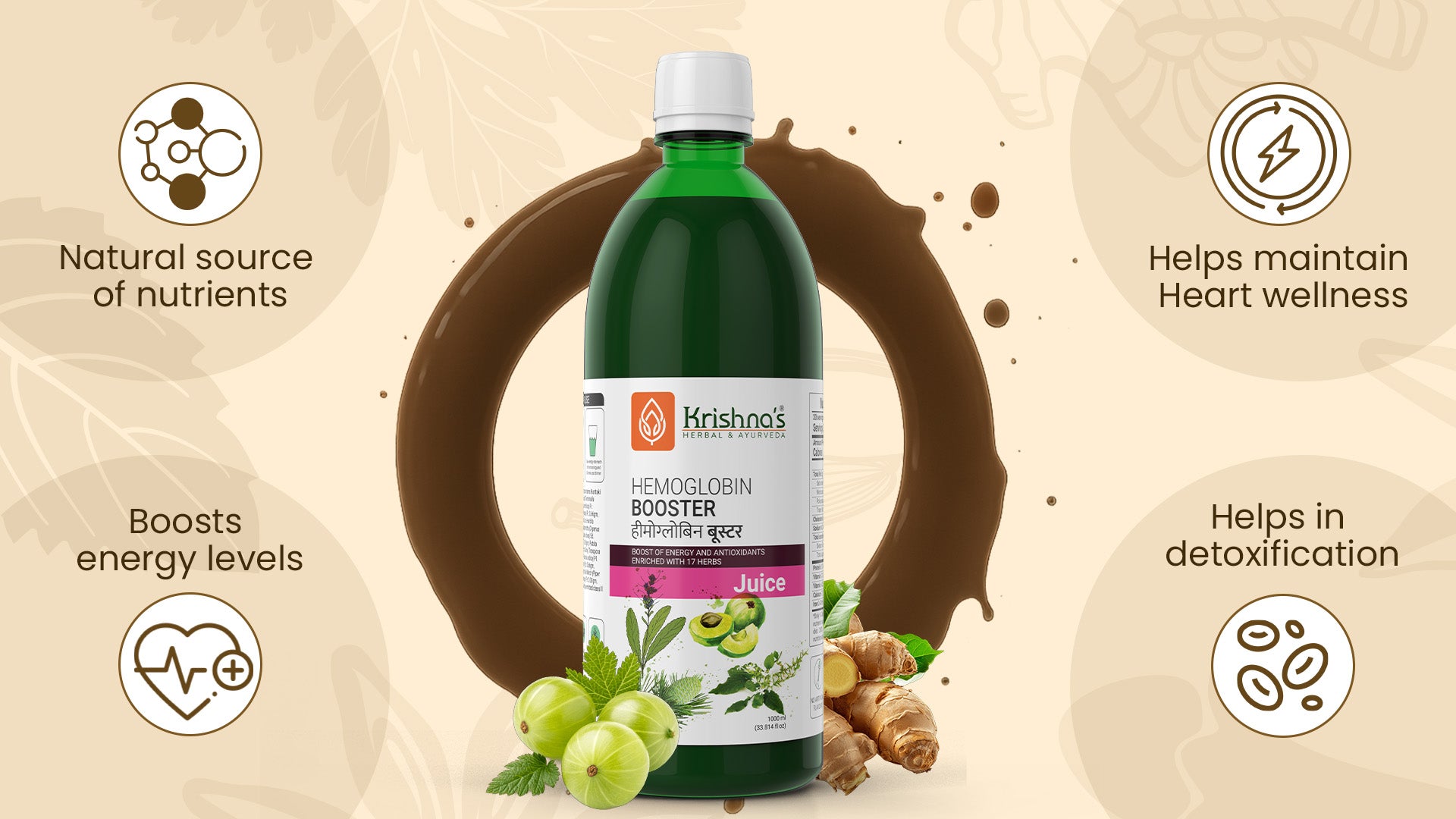 Manages Cholesterol - It’s important to have sufficient oxygen and hemoglobin levels to lower or maintain cholesterol levels in your body. Krishna’s hemoglobin booster juice helps you achieve good levels of oxygen and hemoglobin. Plus, it promotes better cell health leading to a healthy heart.