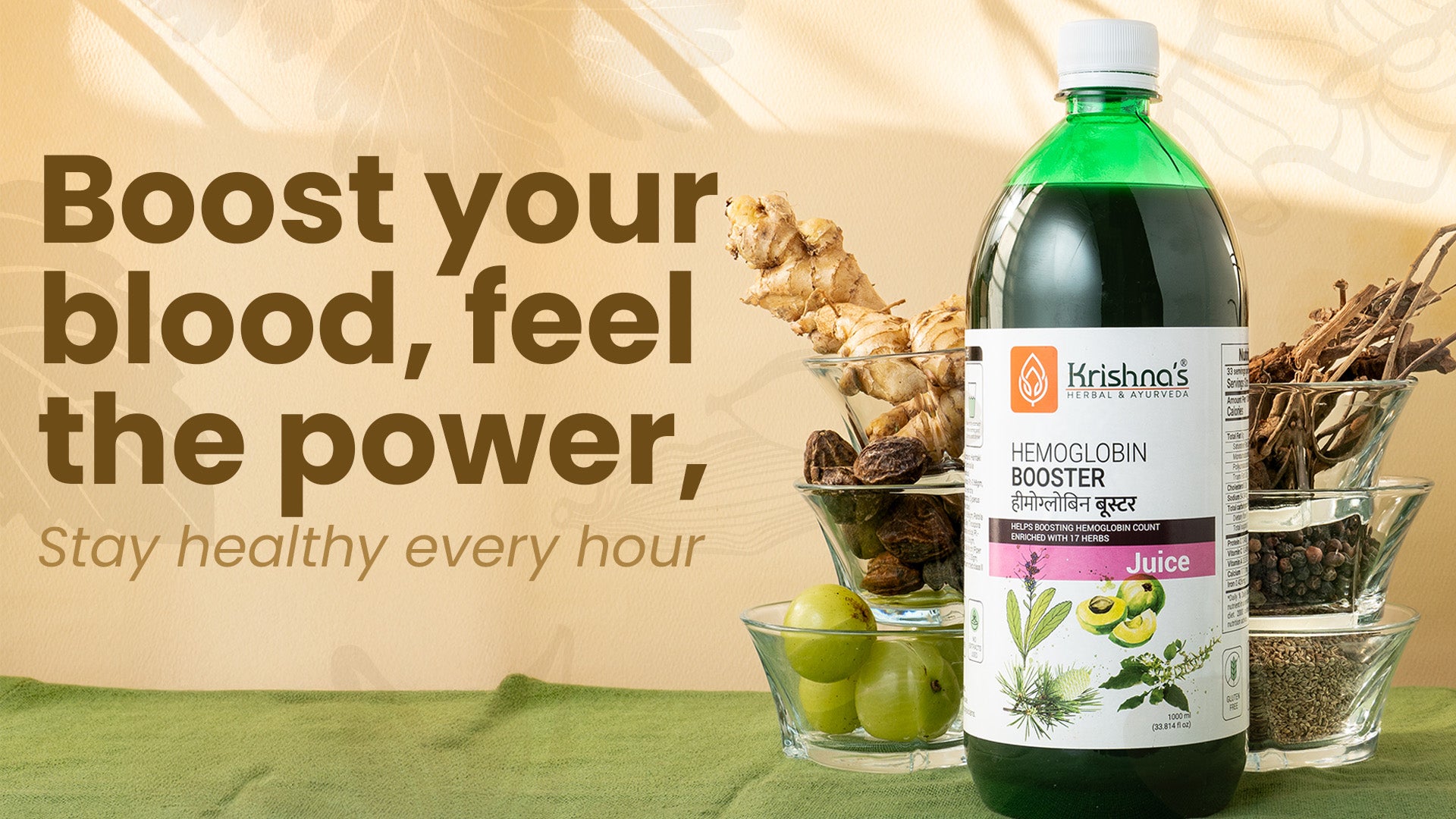Increases Hemoglobin - If you’re seeking to increase your hemoglobin levels you are advised to increase iron intake in your day-to-day diet. Hemoglobin booster juice is composed of natural herbs like Harad, Haheda, Amla, Giloy, Soth, Pipal, and much more. These herbs are rich in iron that aid in increasing hemoglobin levels.