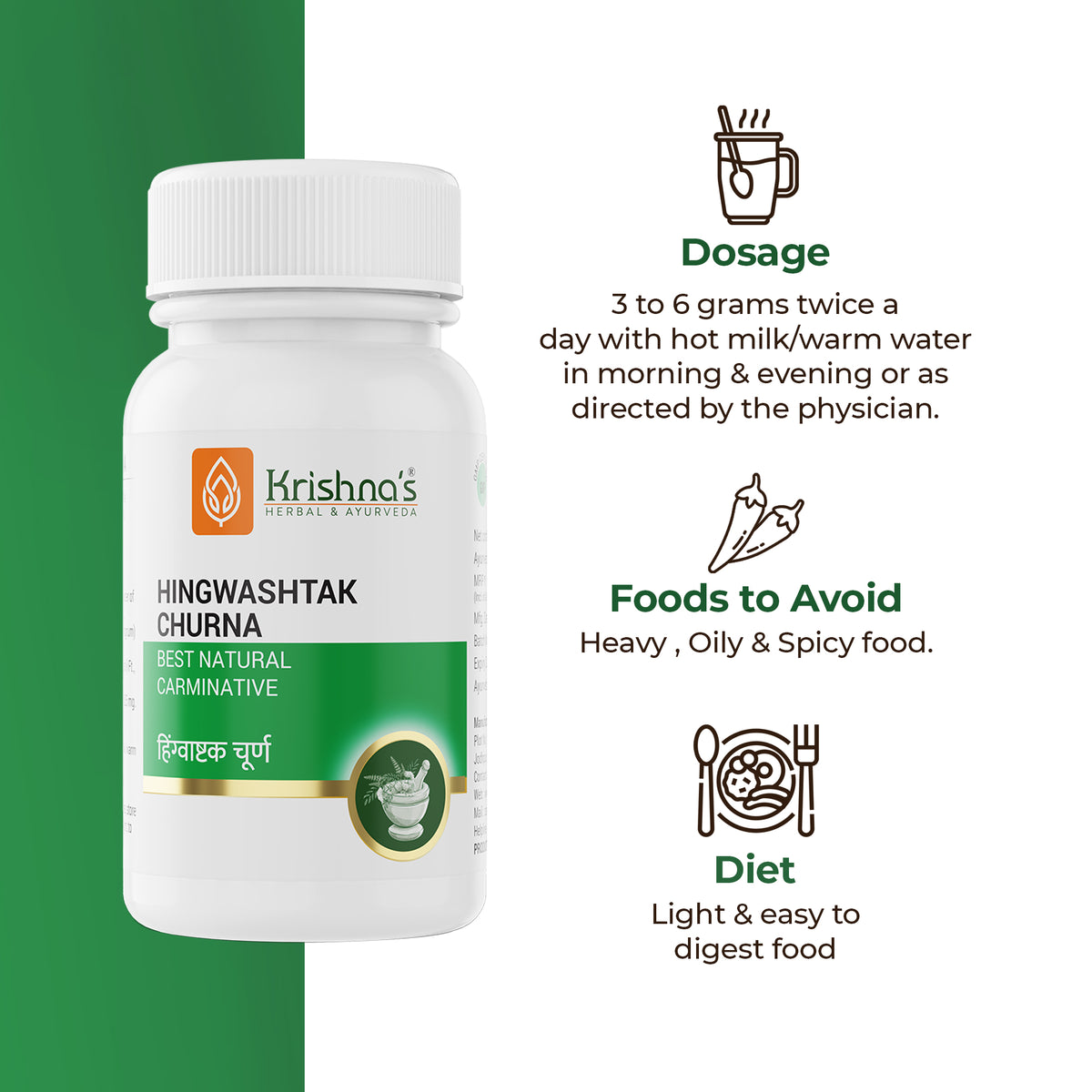 ✅ Anti-inflammatory : The herbs present in Hingwashtak Churna, especially ginger, possess anti-inflammatory properties, which may help in relieving inflammation in the digestive tract.