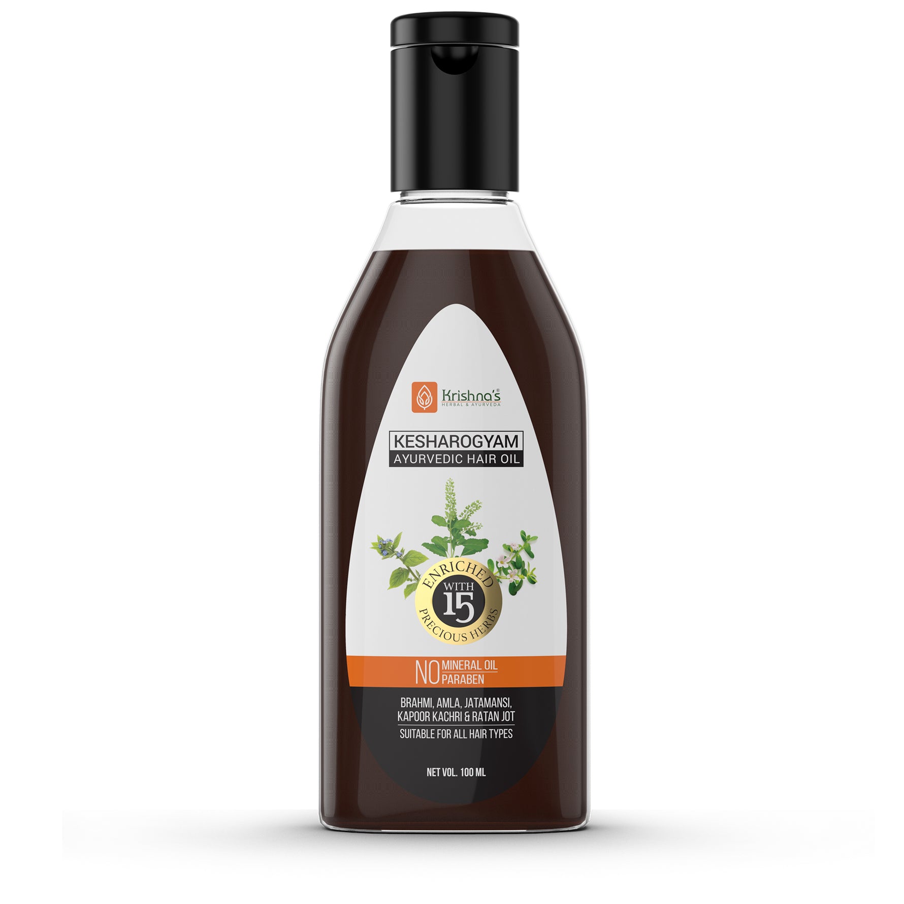 Introducing Kesharogyam Hair Oil from Krishna Ayurved, a premium hair care product formulated to promote strong and healthy hair. This exquisite hair oil is meticulously crafted using a blend of natural and traditional Ayurvedic ingredients known for their nourishing and revitalizing properties.