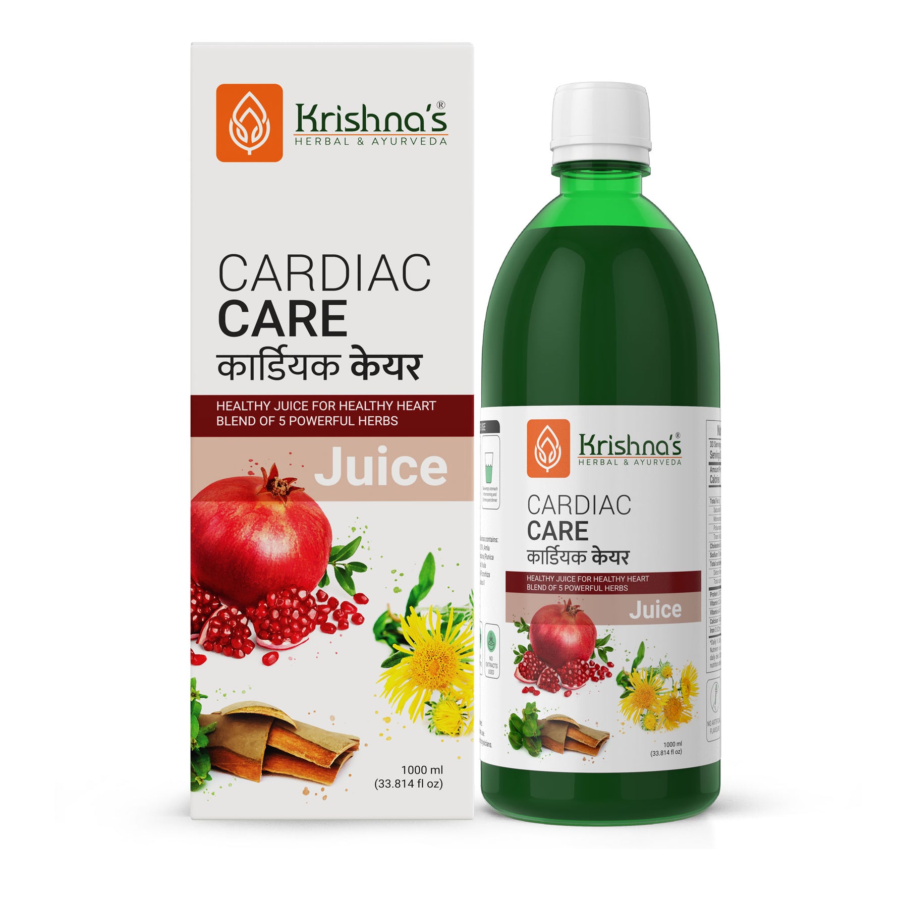 Krishna’s Cardiac Care Juice is enriched with a synergistic blend of Ayurvedic herbs and fruits known for their heart-supportive properties. It includes Arjuna, known to support muscle strength and regulate blood pressure; Kutki, which aids in liver detox and metabolic balance; Amla, a rich source of vitamin C and antioxidants; Anardana, beneficial for improving circulation and digestion; and Pushkar Mool, traditionally used to promote respiratory and heart health. These carefully selected herbs work together to help maintain a healthy lipid profile and overall cardiac wellness.