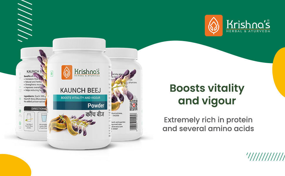 Konch (Kaunch) Beej Powder is a fine powder made from the seeds of the Konch plant, also known as Mucuna pruriens. Konch Beej Powder is a natural powder made from the seeds of a plant. It can give you more energy, improve your mood, and might be good for your muscles and reproductive health.