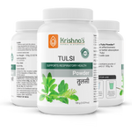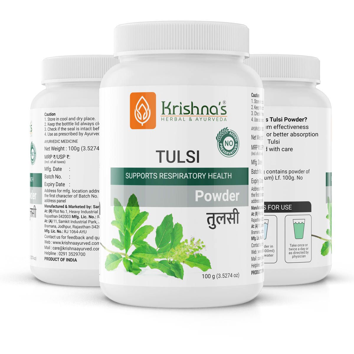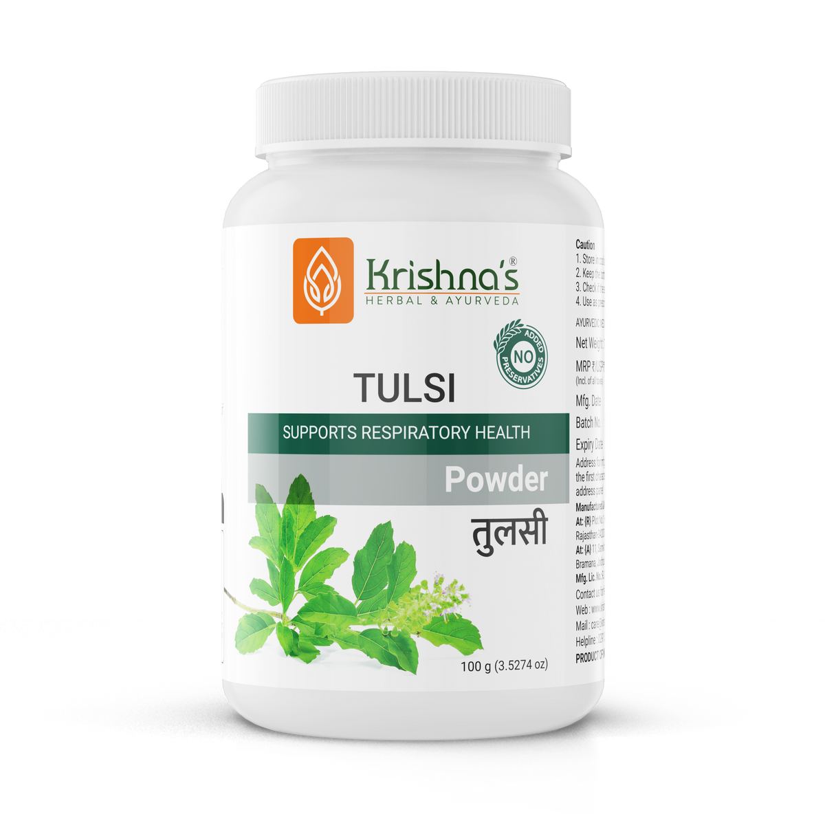 Tulsi Powder is a greenish powder made from the leaves of the Tulsi plant, also known as Holy Basil, is a revered herb in Ayurvedic medicine and has been used for centuries due to its numerous health benefits. Tulsi powder, made from dried tulsi leaves, retains many of these benefits. Here are some potential benefits of tulsi powder: