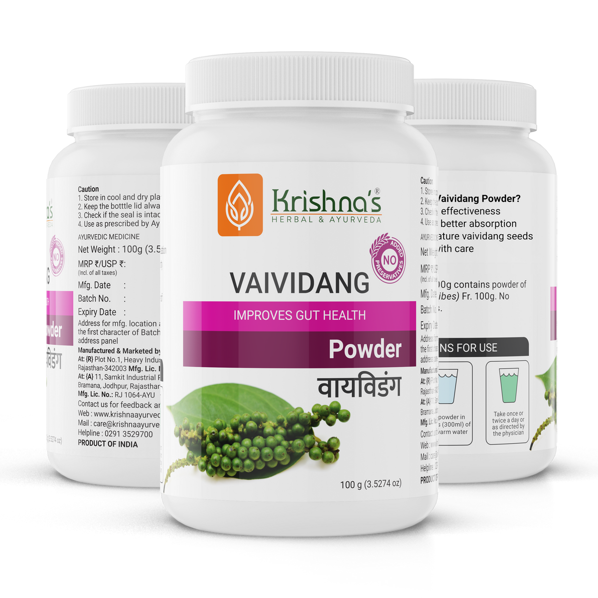 Vaividang Powder: Vaividang Powder is a type of herbal powder made from the seeds of the Vaividang plant. This plant is also known as Embelia ribes and is native to India and other parts of Asia.