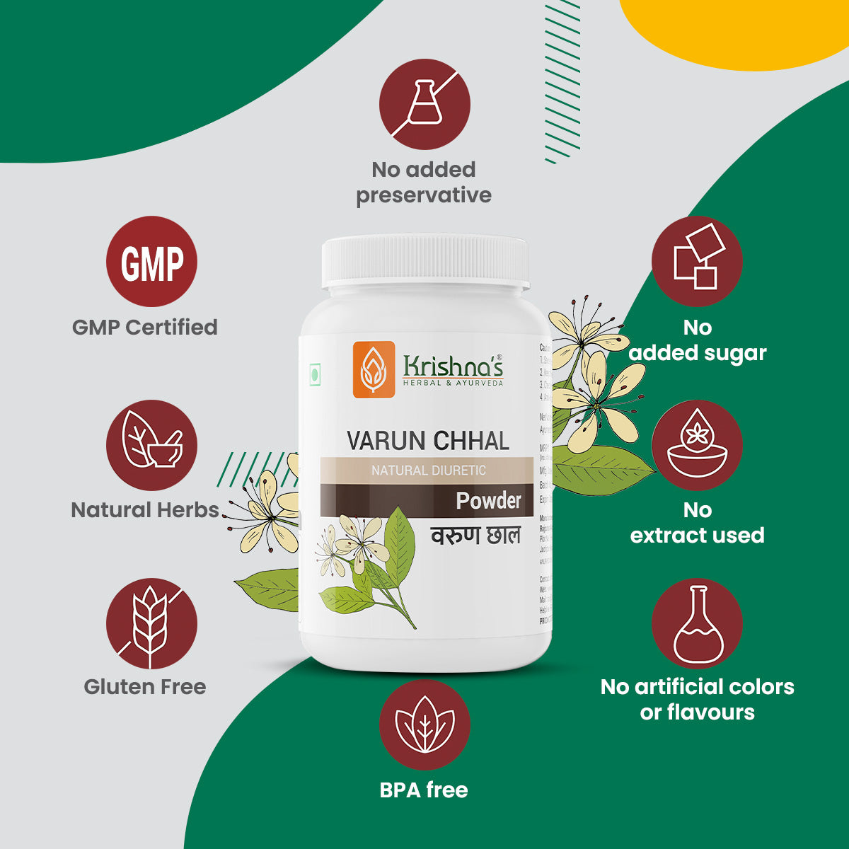 Varun Chal Powder: The bark of the Varun tree is dried and powdered to create Varun Chal Powder, which has been used in Ayurvedic medicine for various health benefits. Here are some potential benefits of Varun Chal Powder.