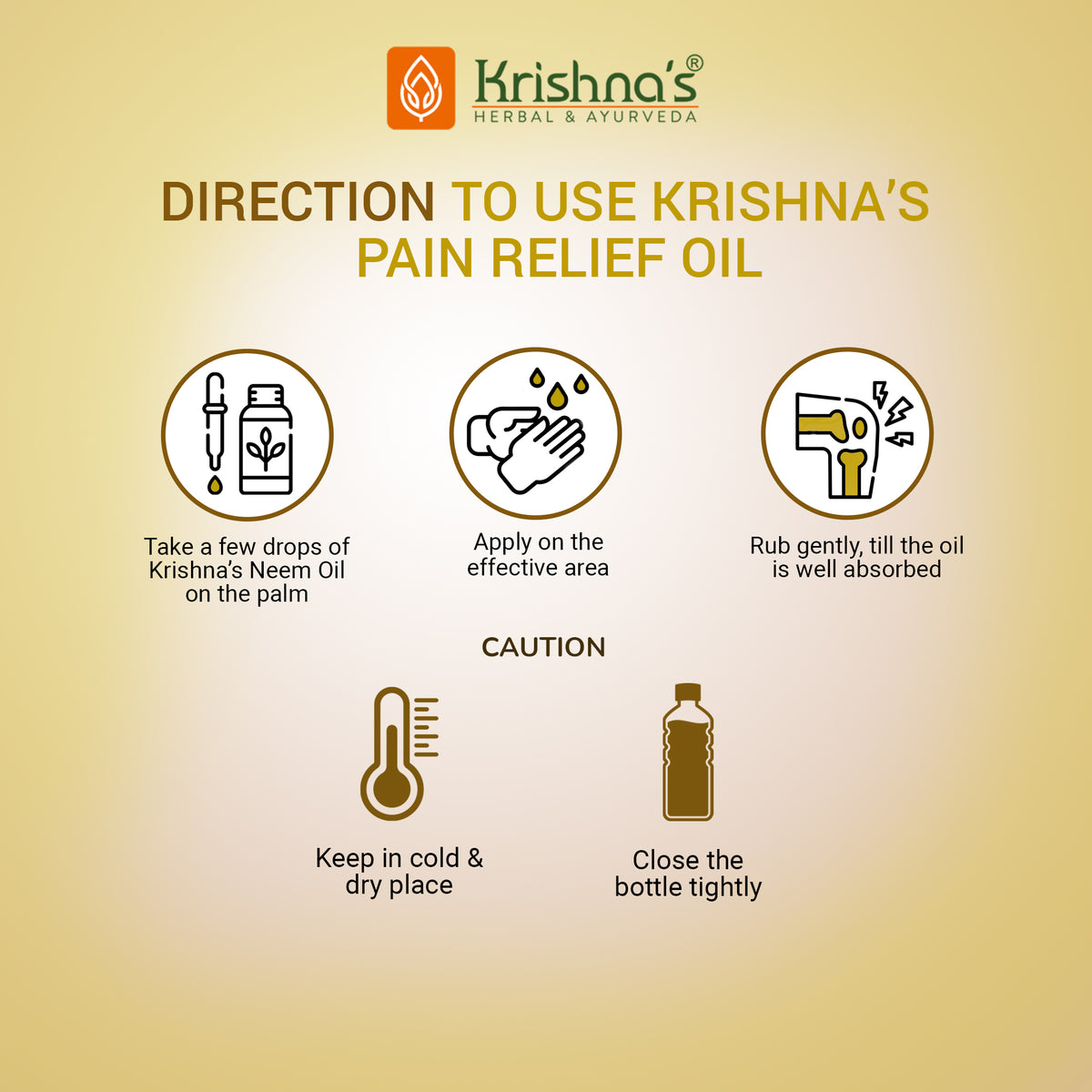 Directions of Use: Take a few drops of Pain Relief oil on effective area and rub for couple of seconds.