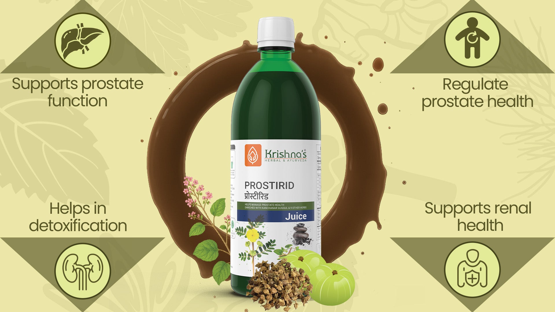 Krishna’s Prostirid Juice is a herbal formulation crafted to promote healthy prostate function and support urinary wellness. Made with time-honored Ayurvedic ingredients, this juice is designed to assist men in maintaining comfort during urination and balancing prostate health as they age. Ideal for those looking to support daily urinary health and overall well-being.