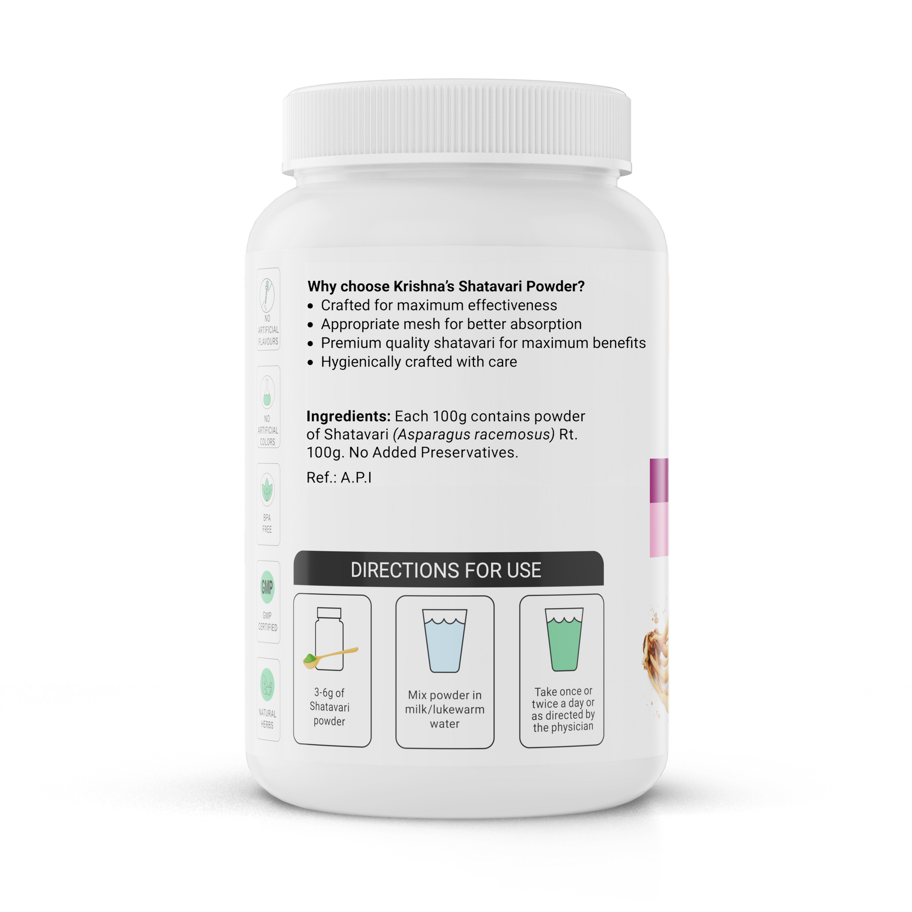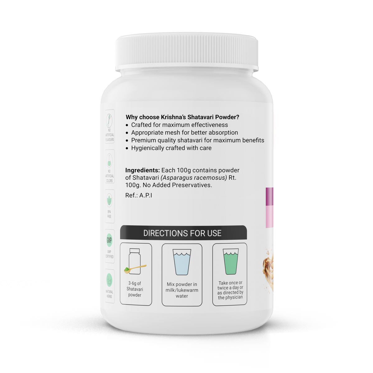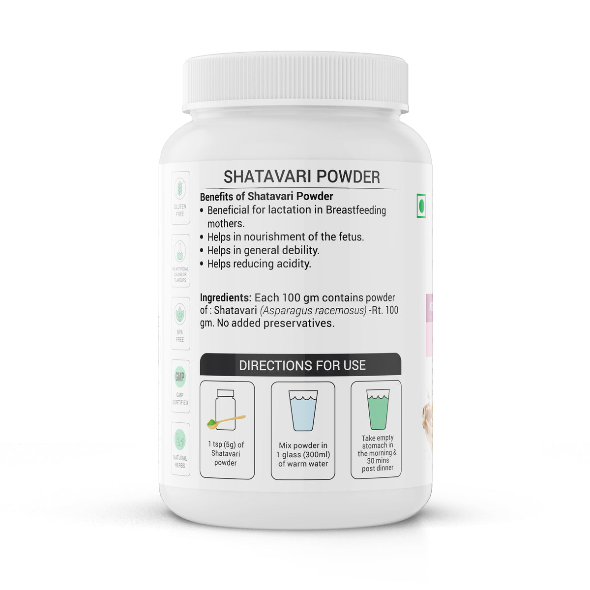 How to Use: Take 1 tsp of Shatavari Powder Mix powder in 1 glass (300 ml) of warm water Take empty stomach in morning & 30 mins post dinner.