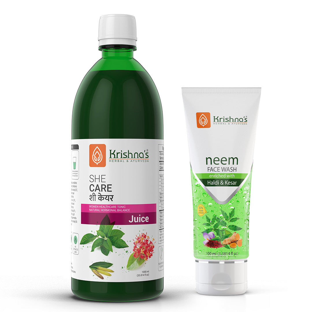 Upgrade your daily wellness and skincare routine with the powerful combination of She Care Juice & Neem Face Wash