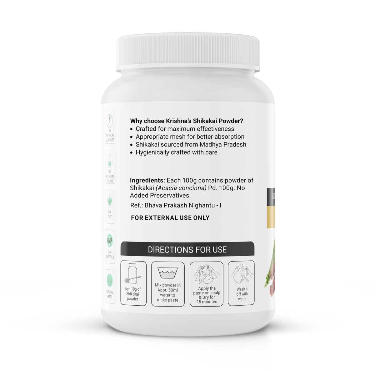 How to Use: Apr. 10g of Shikakai powder Mix powder in Appr. 50ml water to make paste Apply the paste on scalp & Dry for 15 minutes Wash it off with water.