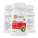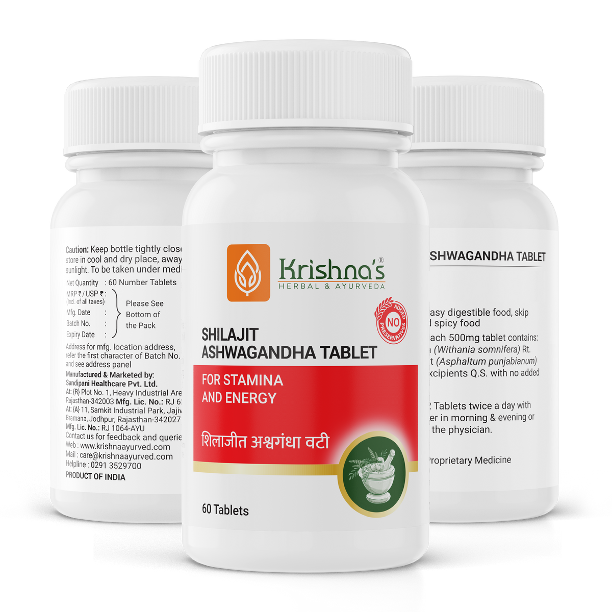 Krishna's Shilajit Ashwagandha Tablet is made from a combination of the two most popular Ayurvedic herbs, Shilajit and Ashwagandha, known for their rejuvenating and adaptogenic properties. This is a potent combination that can provide limitless benefits for a healthy body and mind.