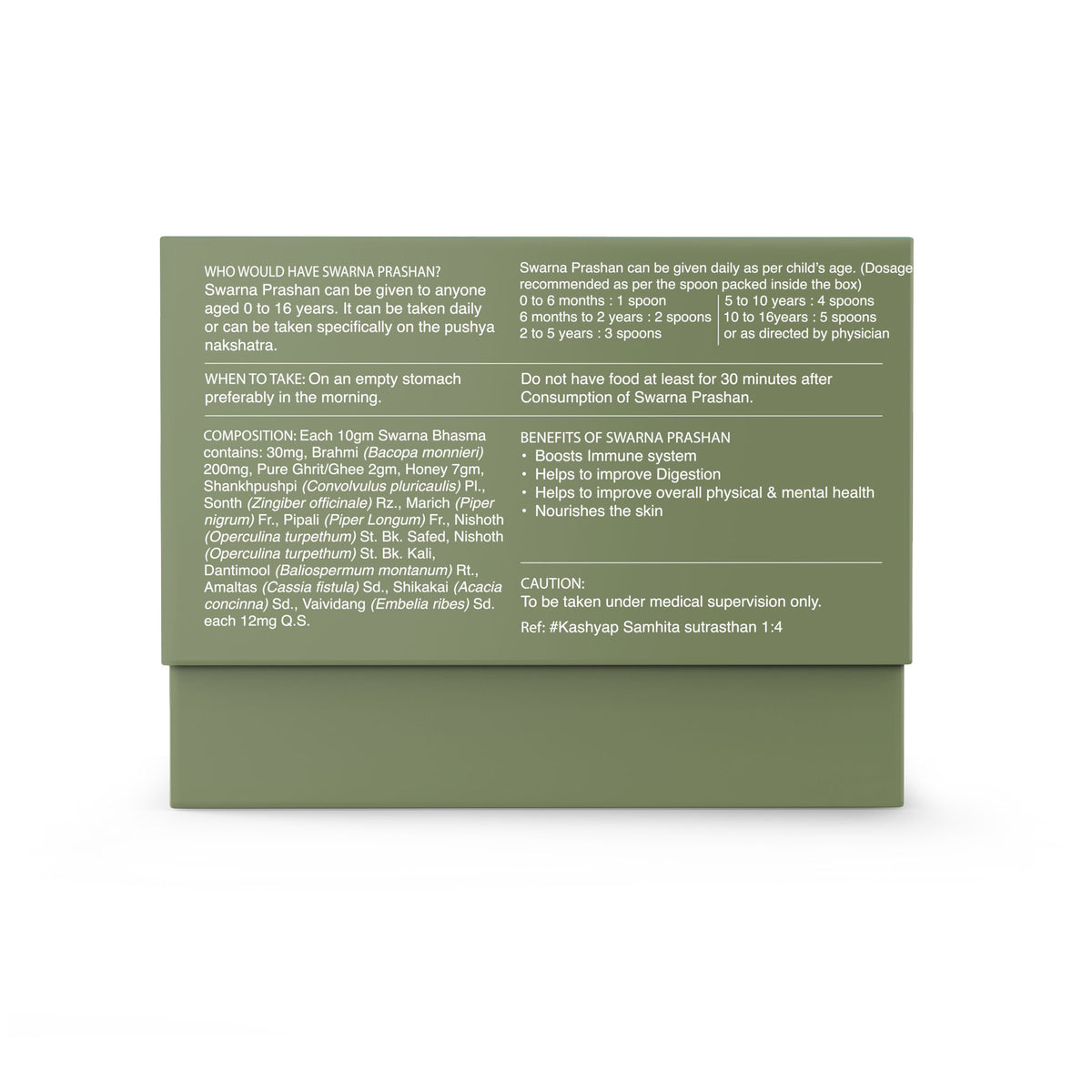✅ Enhances Nutritional Absorption: The combination of herbs and ingredients in Swarnaprashan is believed to improve the absorption and assimilation of nutrients from food, ensuring optimal nourishment for growing children.