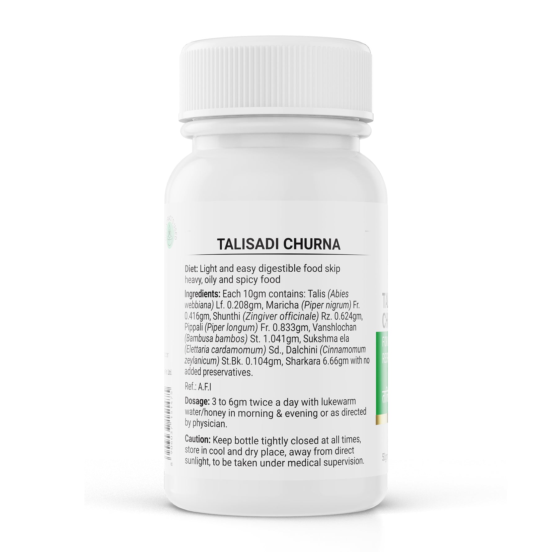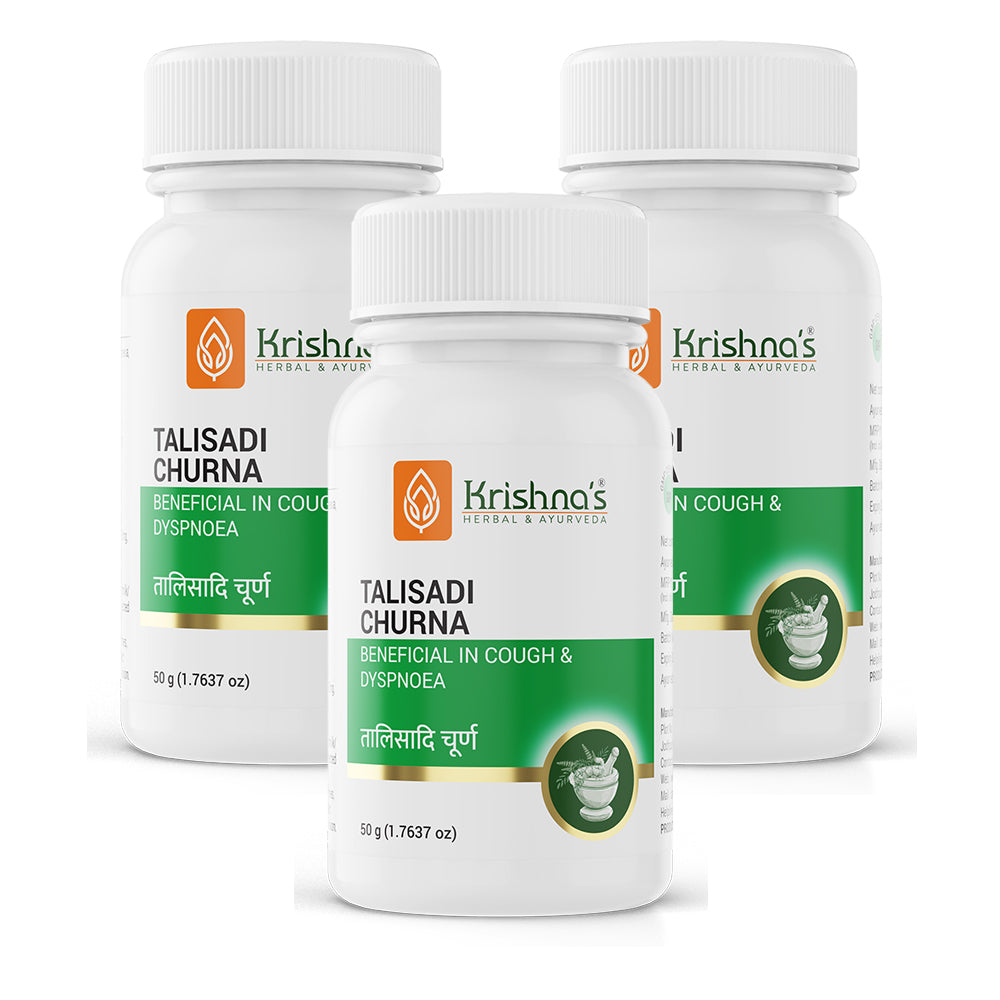 Talisadi Churna is a traditional Ayurvedic herbal formula, consisting of a blend of natural ingredients. It has a wide range of potential benefits, such as promoting respiratory health and supporting the body's natural immune response. With its unique mix of herbs, Talisadi Churna is a trusted choice for maintaining overall wellness.