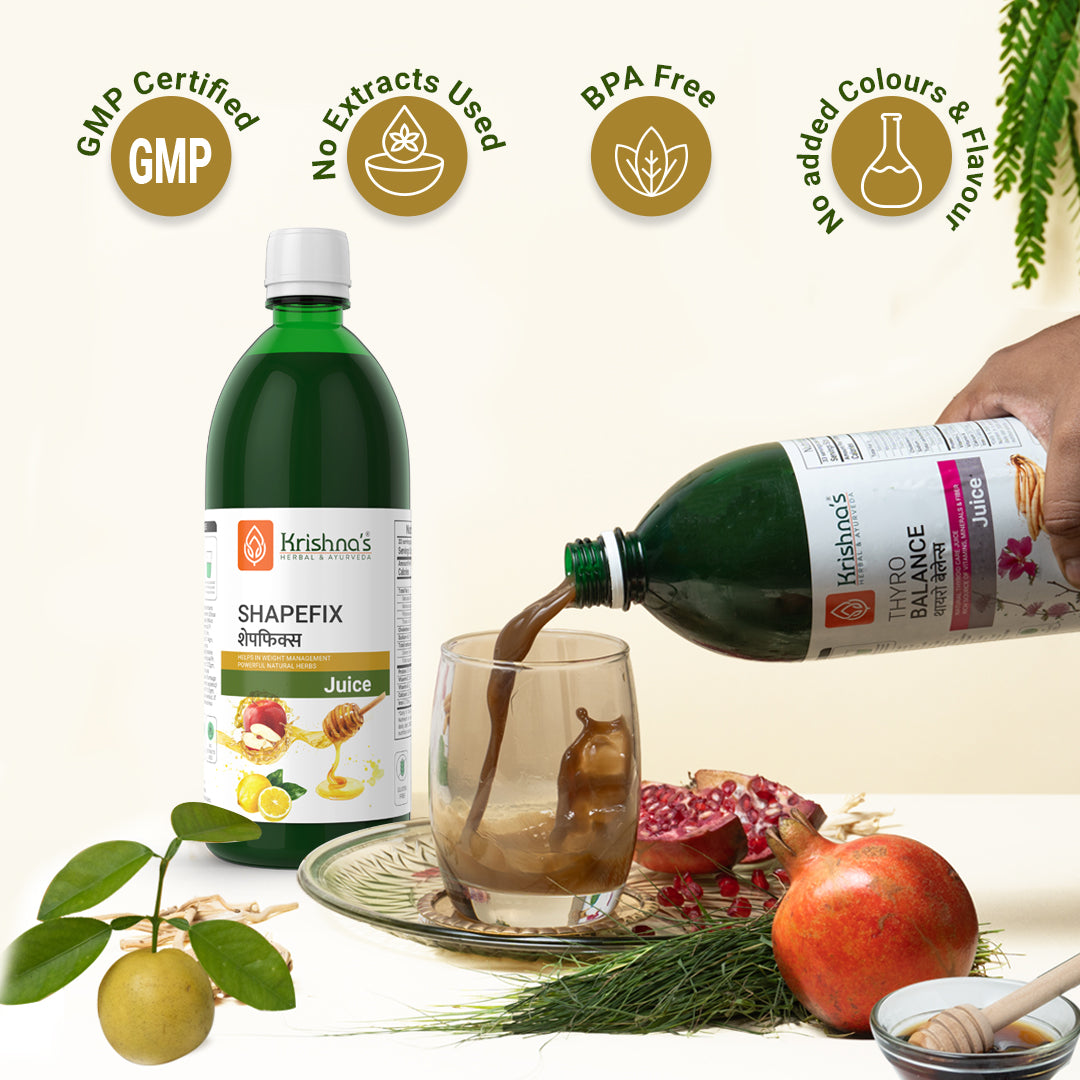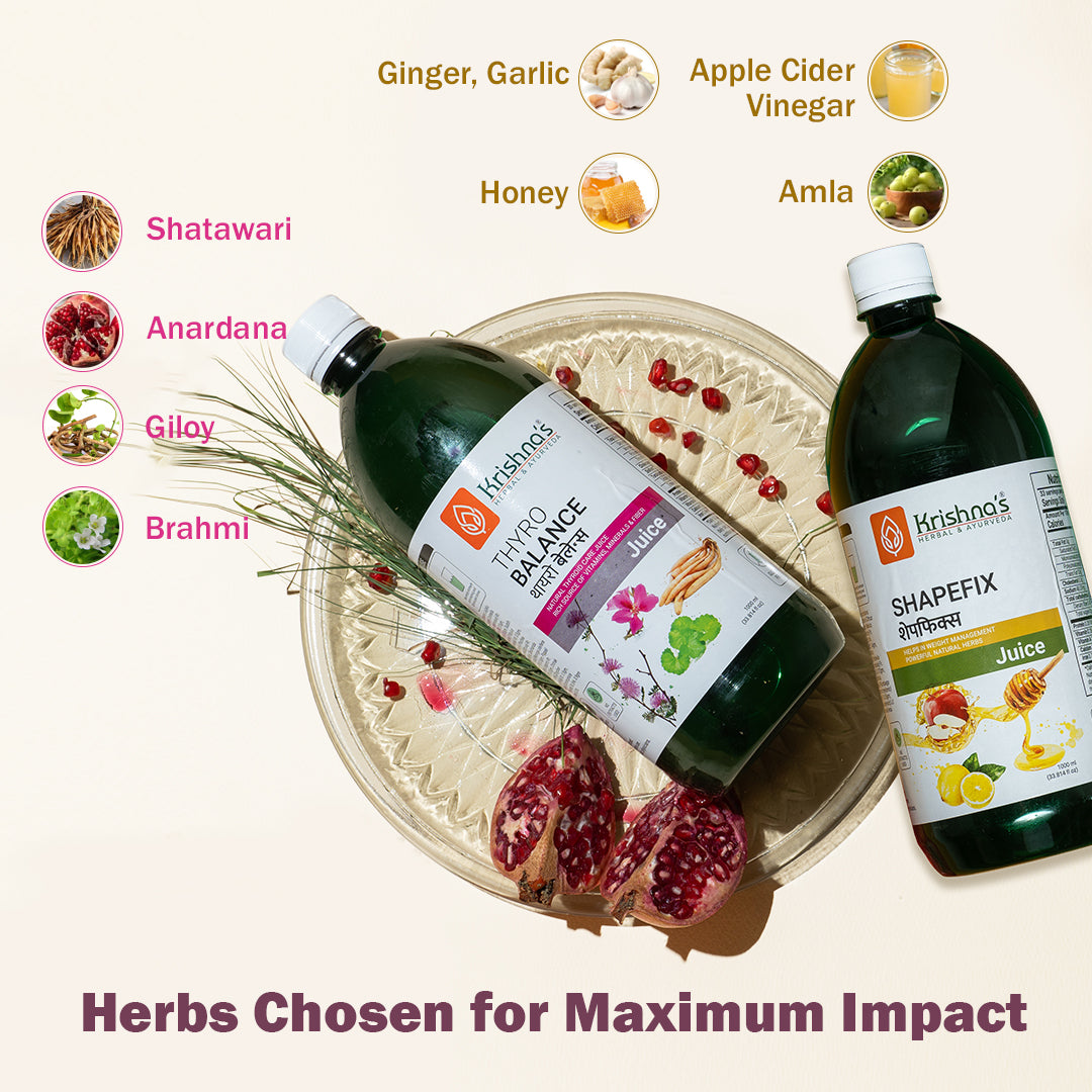 Thyro Care Juice supports natural thyroid function, while ShapeFix Juice complements it by promoting active metabolism and balanced energy levels.