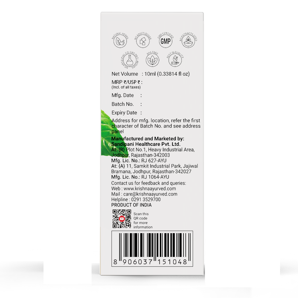 Krishna’s Tulsi Drops have antioxidant properties. It aids to provide relief from cold, cough & common flu. It has antiseptic, antibiotic, antimalaria & antimicrobial properties. It contains the extracts of 5 rare tulsi and is also called punch tulsi, which has a lot of benefits. The intake of tulsi is the best way of intestine cleaning. It also helps with stress management. It is good for skin, joints, and liver health. Tulsi Drops heal respiratory conditions.